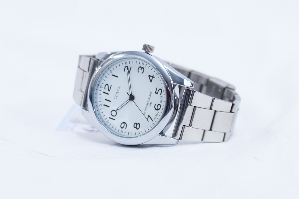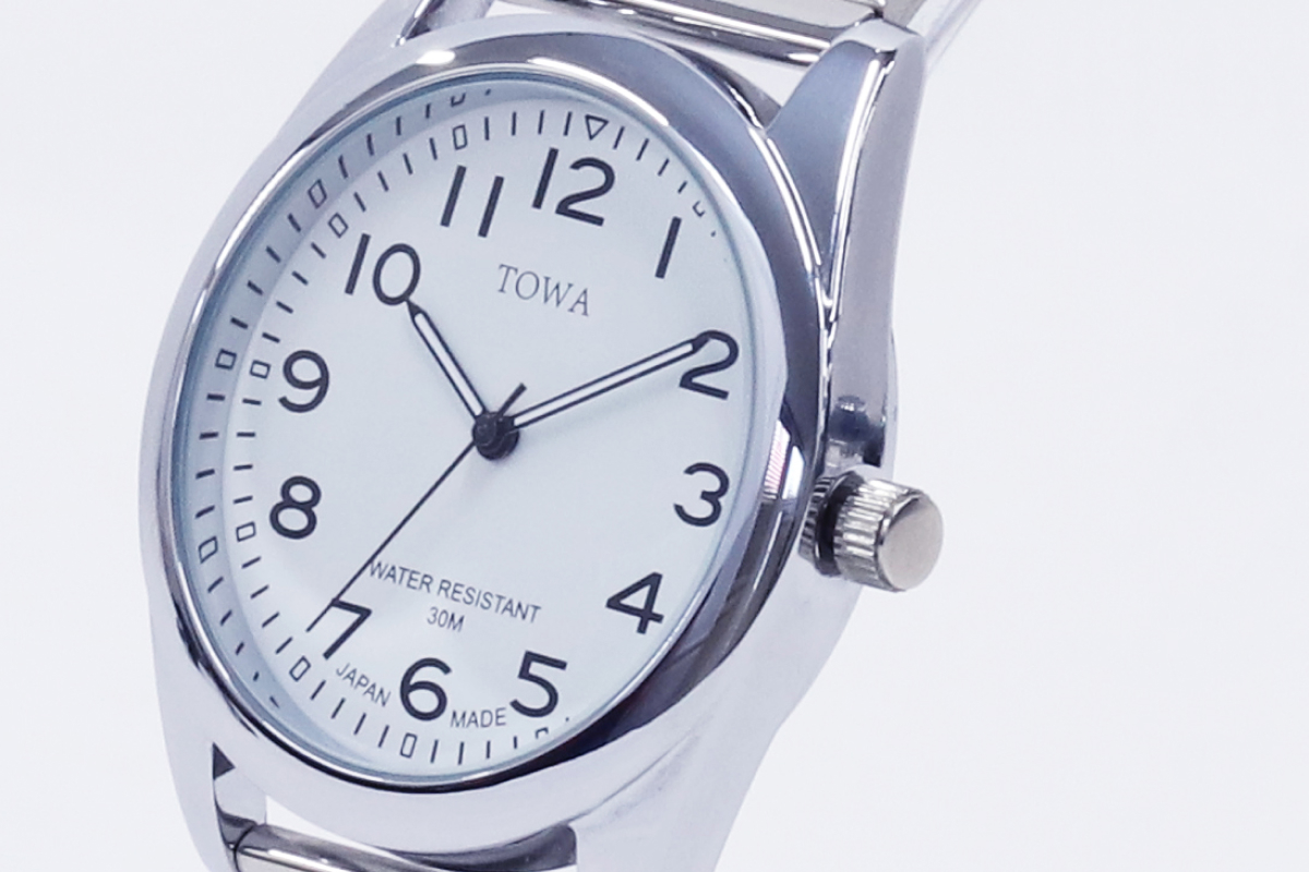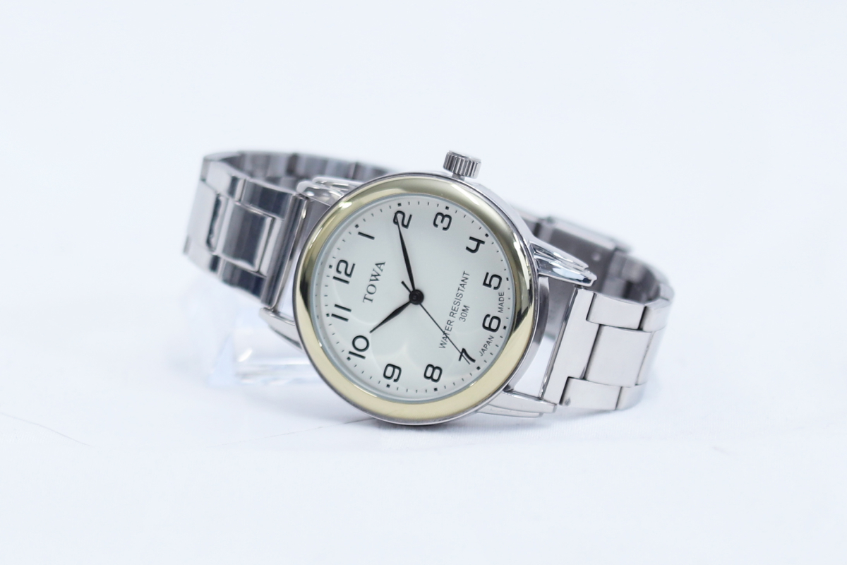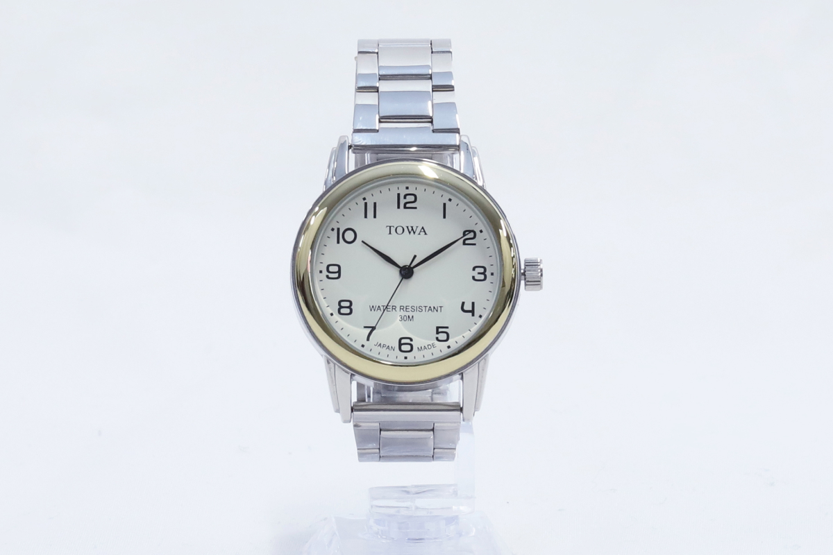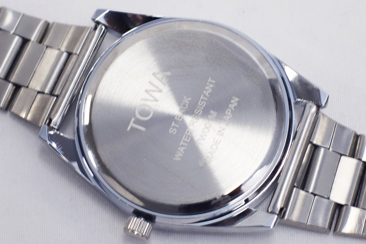 シルバー TW002M-1 ゴールド TW002M-2 裏面・接続部分 防水機能 日常生活防水 バンド SSバンド ケースサイズ 38mm ベルト フリーアジャスター 生産国 日本製 製品 腕時計 TW001M TW002L